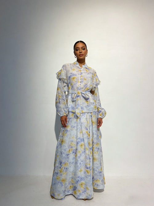 BLOOM - Ensemble Jupe longue fluide à imprimé floral volants et ceinture nouée