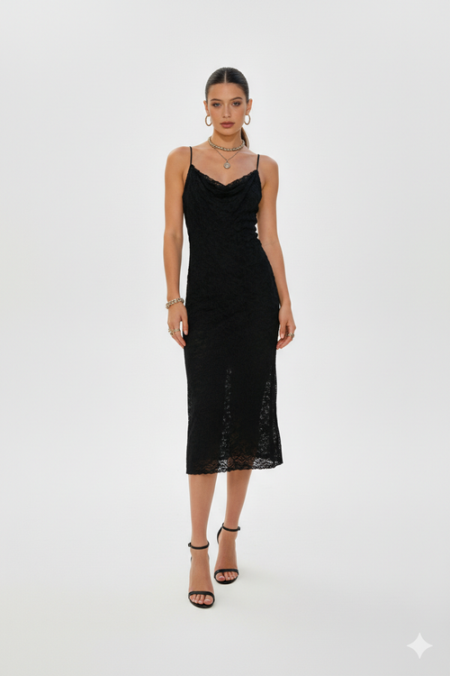 BLOOM - Robe longue près du corps en dentelle à fines bretelles