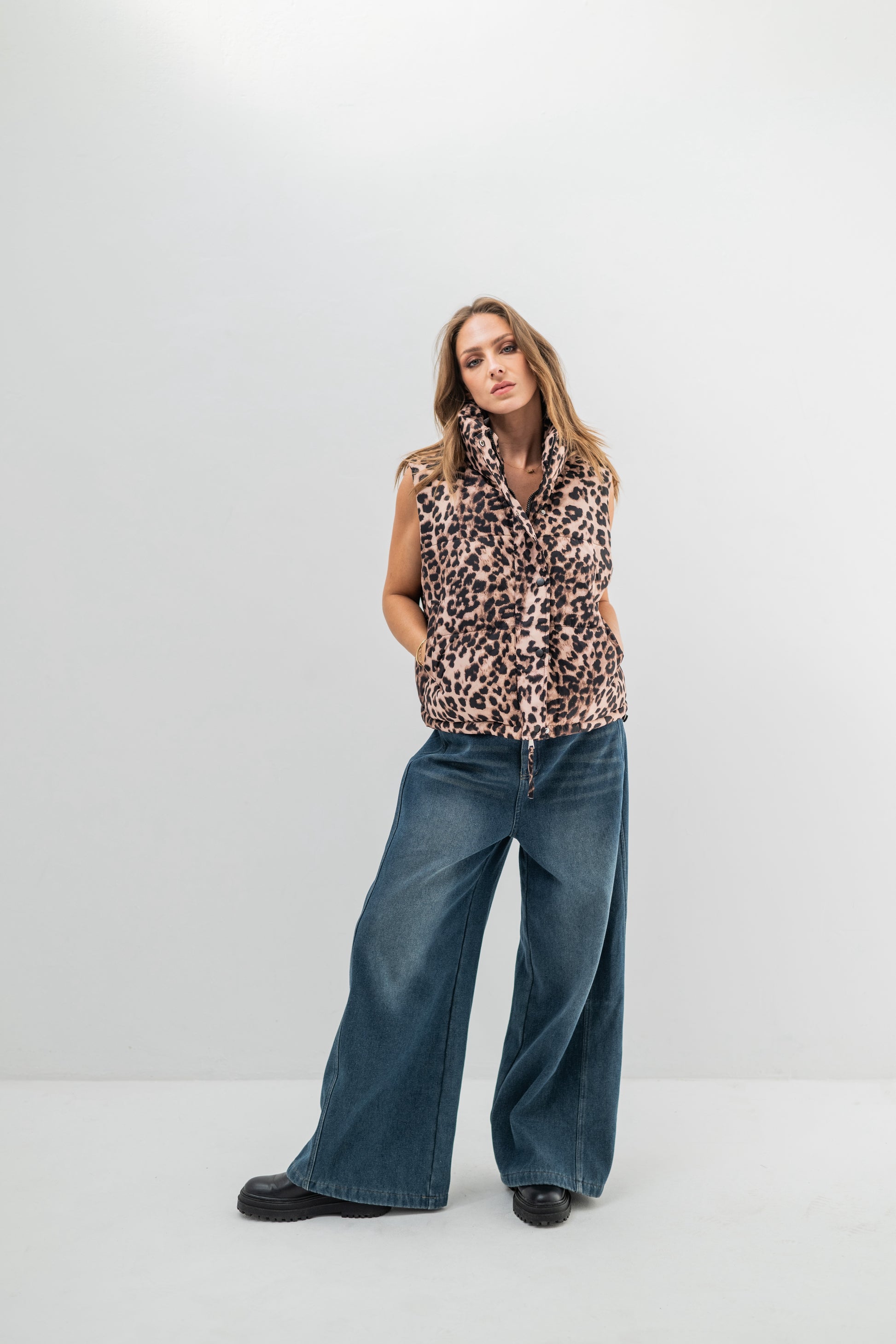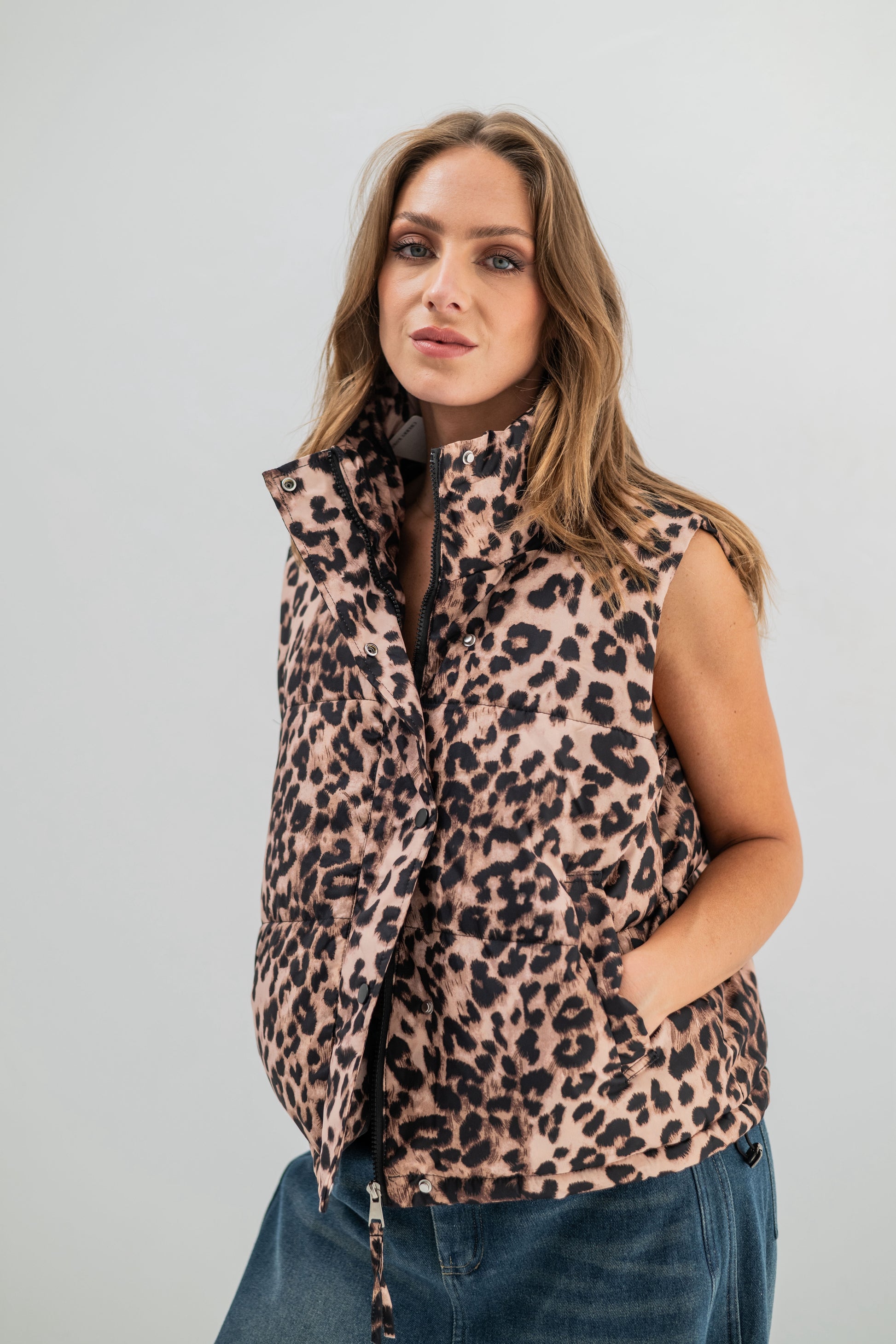 LEONA – Gilet matelassé sans manches imprimé léopard effet premium