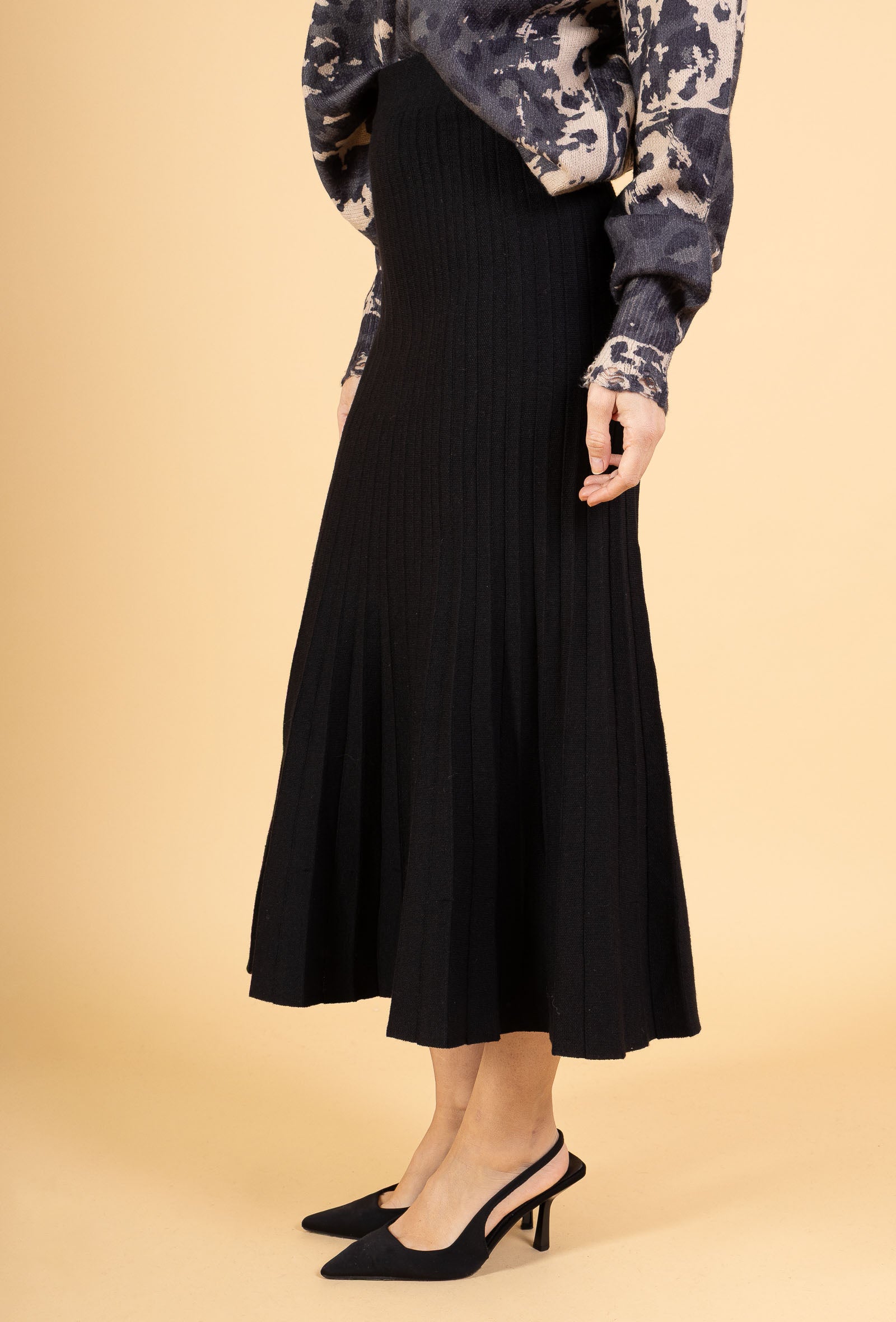 Jupe midi élégante à maille côtelée, conçue pour offrir une silhouette féminine et élancée. Sa taille haute assure un maintien confortable tout en soulignant la ligne de la taille. La coupe évasée à partir du bas crée un mouvement fluide et chic, idéale pour les looks automne/hiver. La maille douce et extensible apporte confort et chaleur, parfaite pour un style quotidien, bureau ou tenue décontractée sophistiquée.
